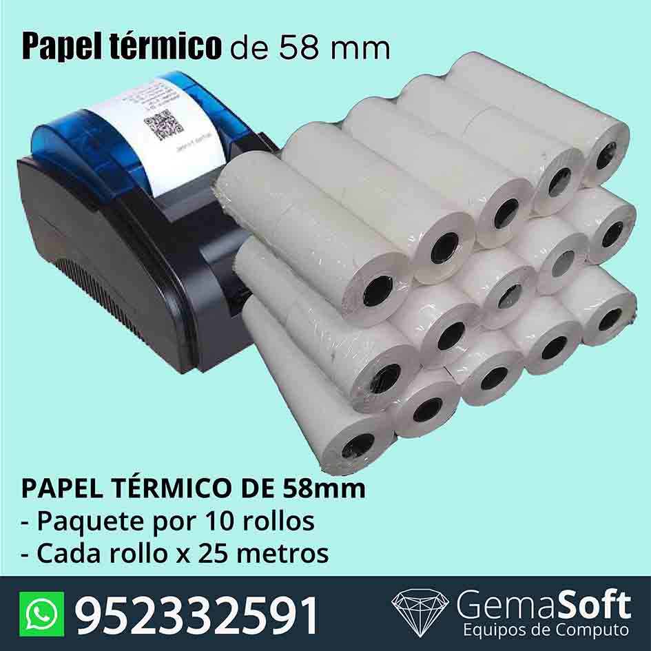 Papel térmico contometro de 58 mm Paquete por 10 rollos de 25 metros